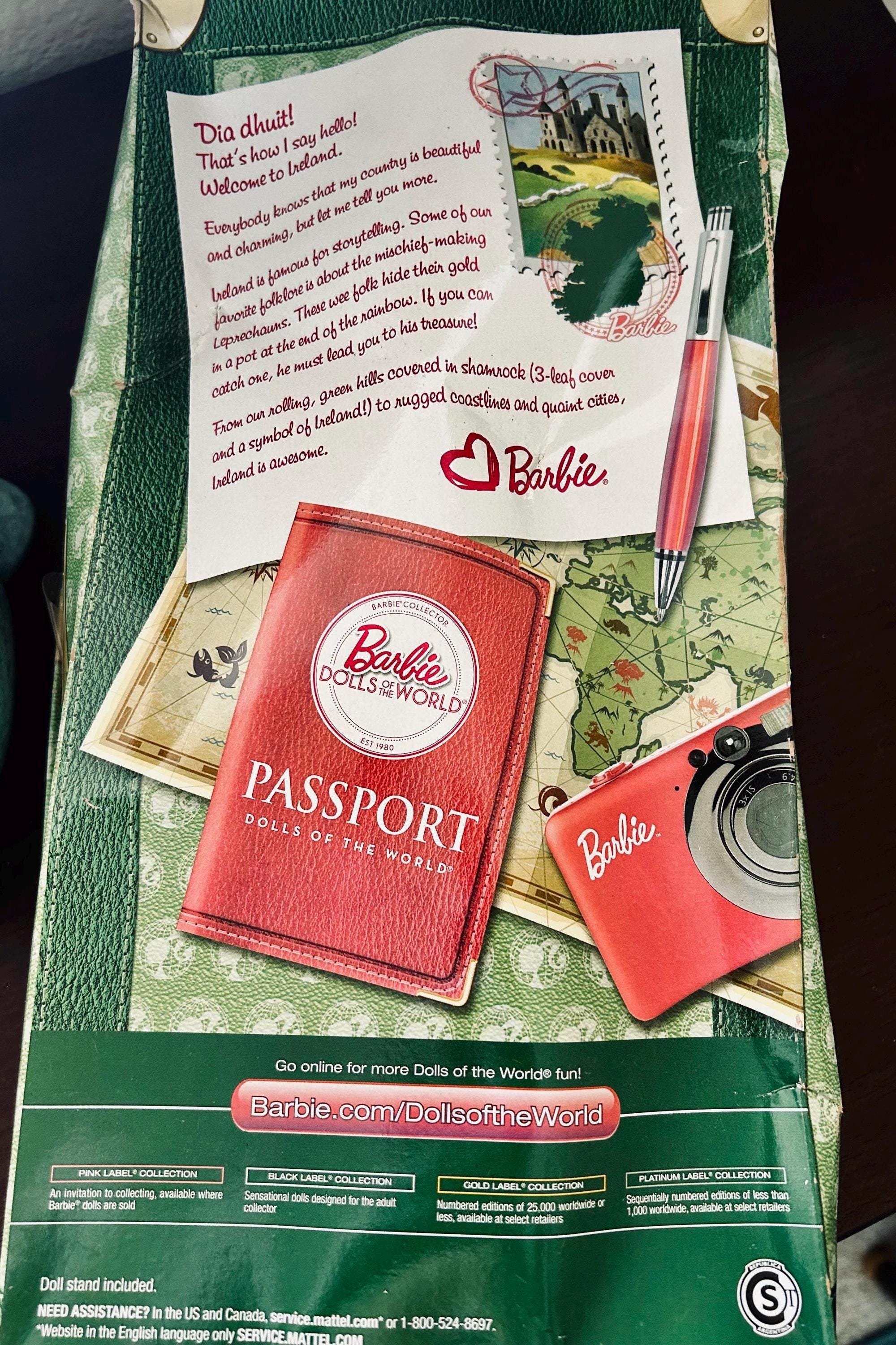 Barbie from Ireland displays her heritage in a traditional green dress with laced bodice